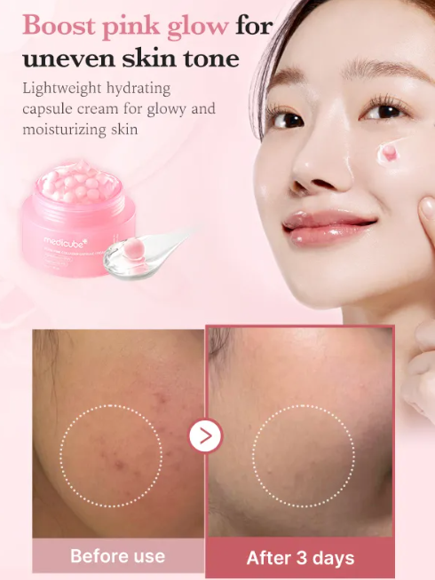 La Medicube PDRN Pink Collagen Capsule Cream 55g è una crema viso anti-age in capsule formulata con PDRN derivato da salmone (Sodium DNA), collagene idrolizzato, peptidi e acido ialuronico.