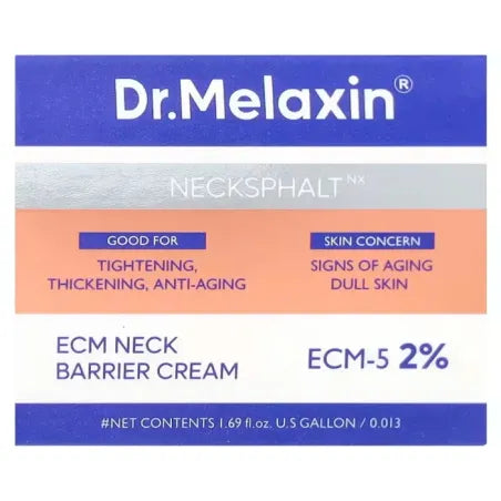 La DR.MELAXIN Necksphalt ECM Neck Barrier Cream è una crema antietà ad alte prestazioni, studiata specificamente per sollevare, rassodare e rigenerare la pelle delicata del collo.