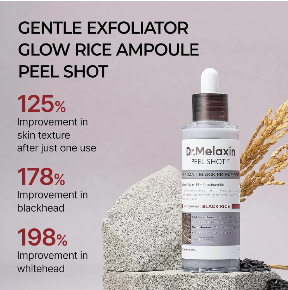 Scopri una pelle più liscia e luminosa con il nostro Black Rice Exfoliating Ampoule — la soluzione delicata per impurità ostinate e zone spente.